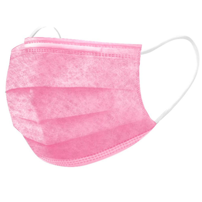 Маска 3-х слойная на резинках розовая в пакете 50 шт/упк
