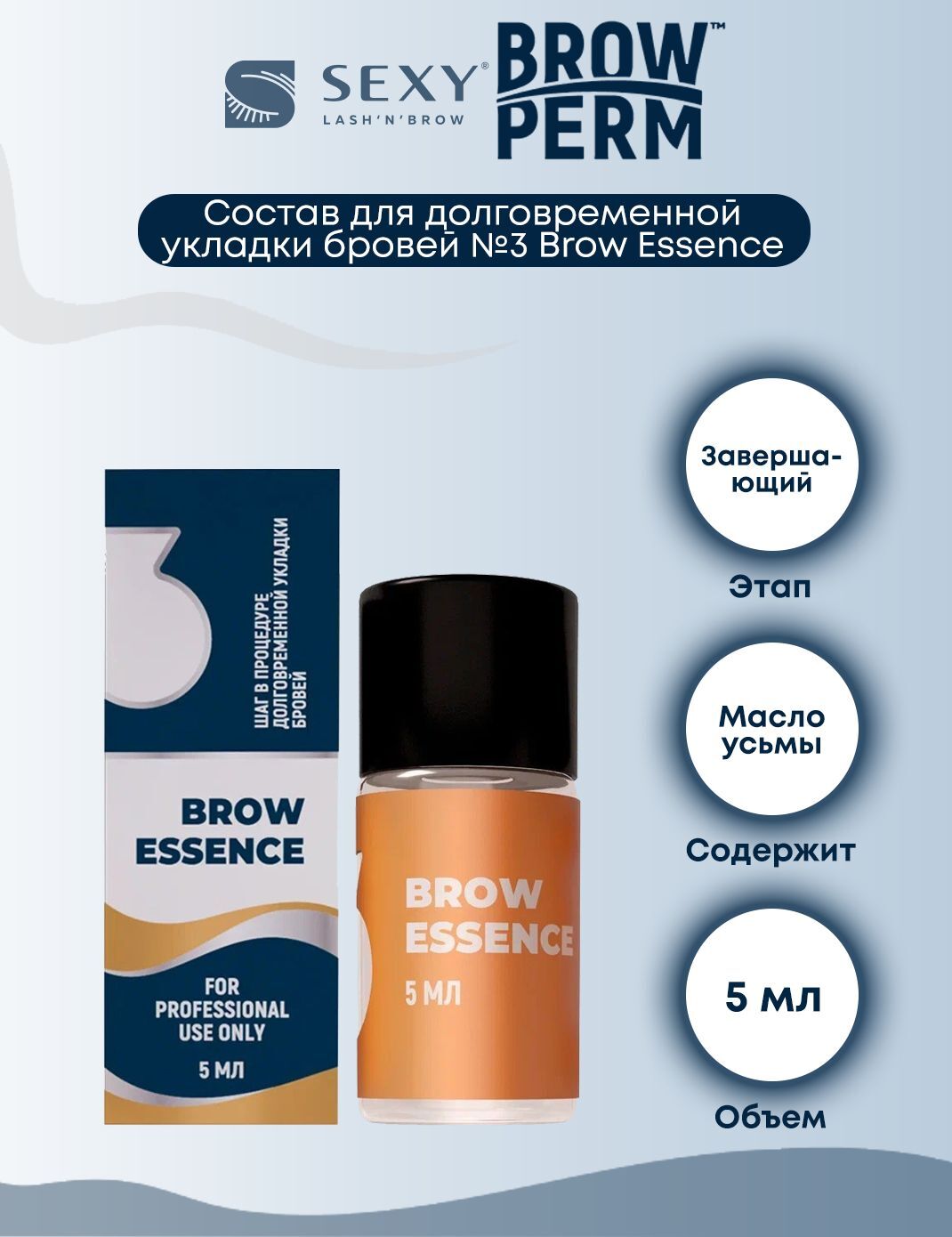 SEXY Состав #3 для долговременной укладки бровей BROW ESSENCE, (5мл)